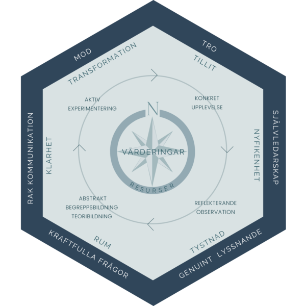 Klientens resurser är i centrum av vår coachmodell. En duktig coach skapar rum för klientens lärande och hjälper dig att upptäcka och kalibrera din egen inre kompass!